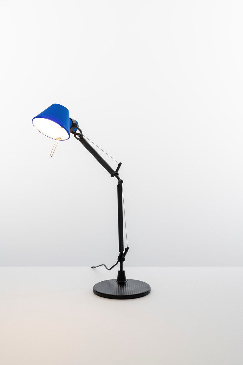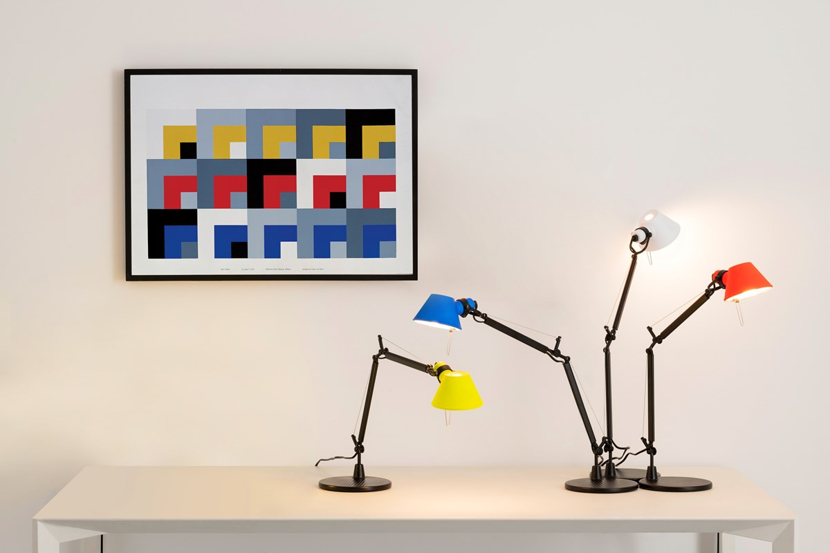 The iconic Tolomeo lamp is now available in vibrant pops of color. Shades of blue, yellow, coral and white add a bright accent to the black base. The lamp features the same flexible arm and diffuser as the iconic original, working perfectly as both a functional task lamp and design object. Brought out in 1987 and designed for Artemide by Michele De Lucchi with Giancarlo Fassina, the Tolomeo was an immediate bestseller, consolidating a working relationship that continues to this day. Inspired by traditional balanced arm lamps like the famous Naska Loris, his challenge was to combine an iconic and “domestic” form with innovative technologies and materials, adapting it to a wide variety of uses and settings.