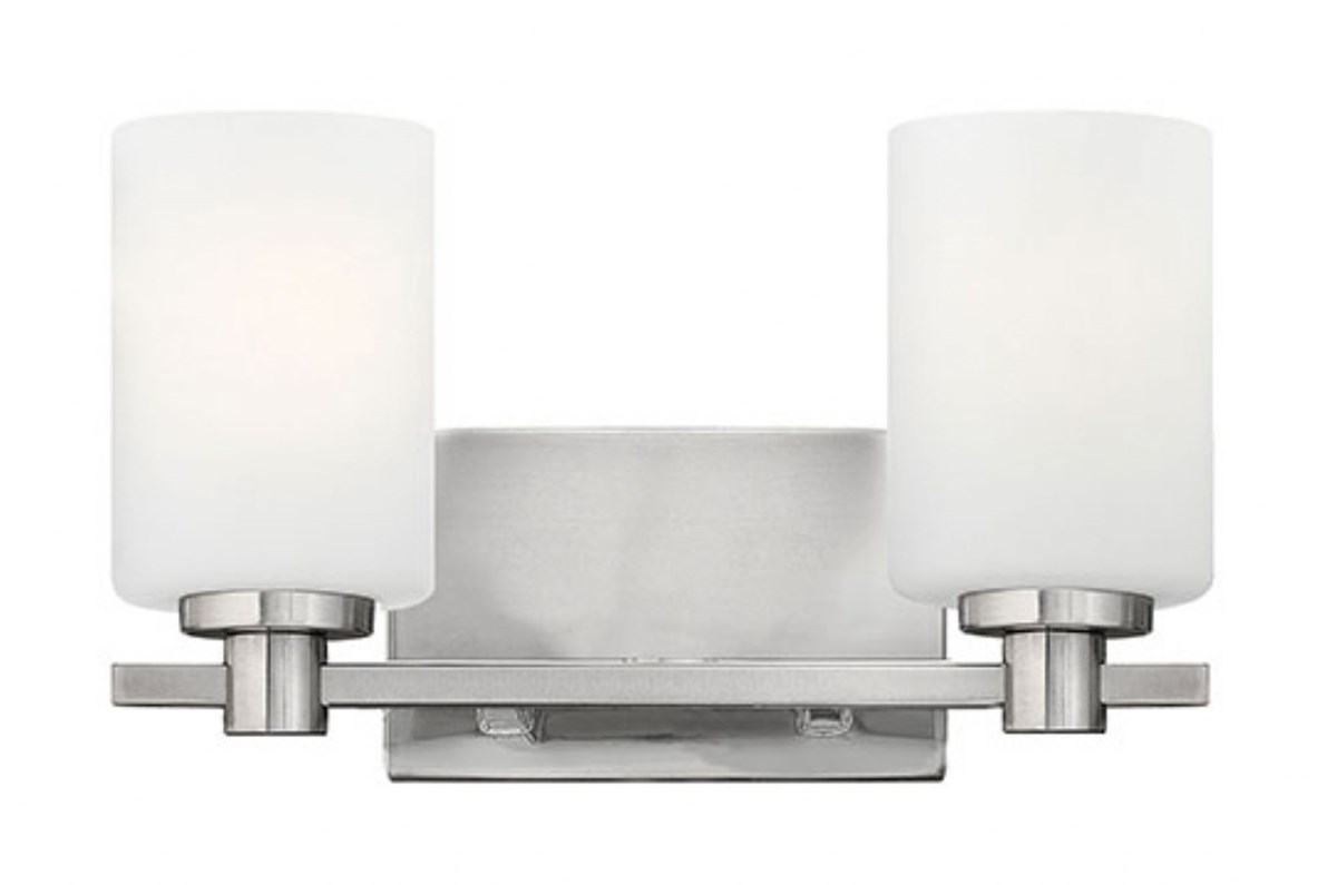 Karlie’s clean design is transitional in style and will complement a variety of décor. Featuring precision die-cast cups and cylindrical, etched opal glass, it is available in Brushed Nickel and Chrome.