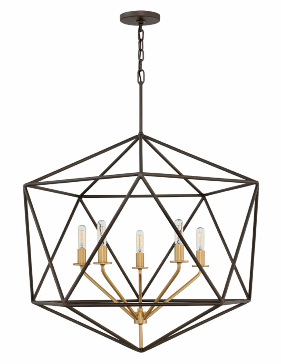 Sleek and chic, Astrid is designed as an airy geometric beauty balanced with robust welded construction. The inner light cluster, uniquely wired from the bottom, appears to float inside the outer cage. The two-tone finish further enhances the layering effect for added depth and dimension.