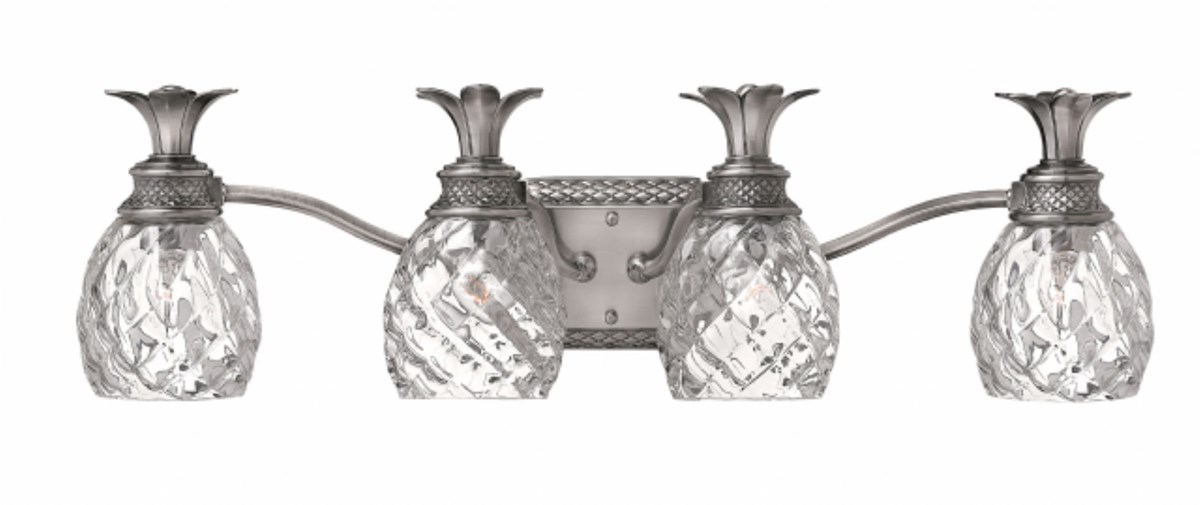 A Hinkley classic, the ornate Plantation collection features exceptional pineapple shaped, clear optic glass that makes a noble statement. The elaborate, decorative cast detailing is accentuated by the its lush finish.
