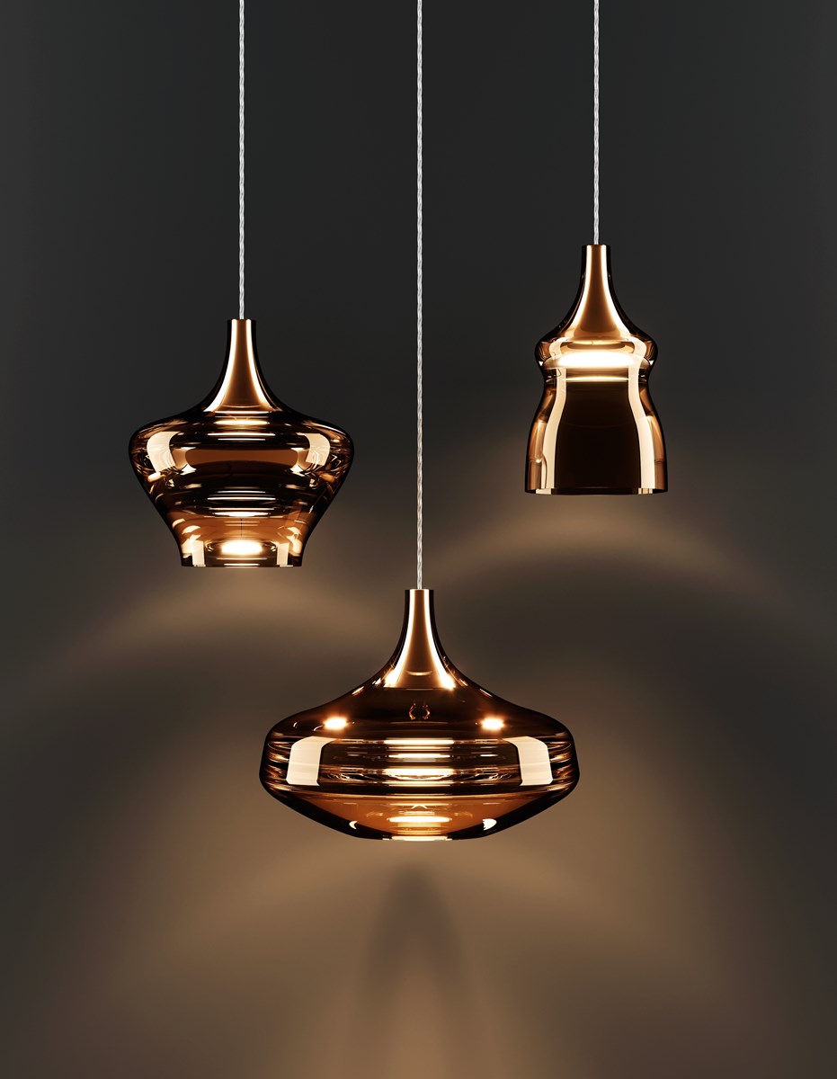 Nostalgia with its retro flair, Nostalgia elegantly tells of ancient glass blowing practices in three sinuous forms that can be combined at will. The perfection of the glass, the innovative LED technology and five elegant finishes make Nostalgia an extremely modern and versatile lamp that lends itself to the creation of captivating atmospheres, whether on or off. Available with a black frame and cable or chrome and transparent cable for all finishes, these combinations offer wide-ranging possibilities to personalize any space: on its own to illuminate a table or to add a sophisticated touch to a bedroom, in linear groups above a counter or peninsula, or in cluster compositions to emphasise larger spaces with refined scenic effects.