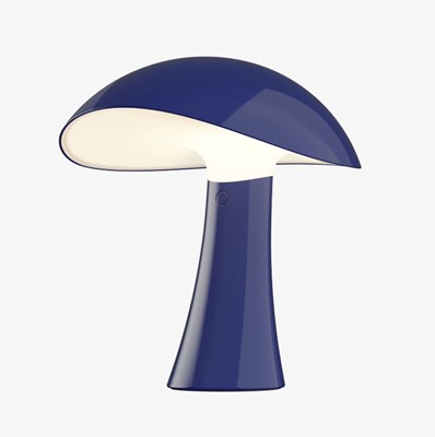 This table lamp emits a pleasant downwardly directed light, which harmoniously illuminates the surface below it through the soft transparency of its triple-layered hand-blown opal glass. In the variant without the top metal shade, the milky opal-glass shade provides further glow to form an alluring halo around the fixture.
