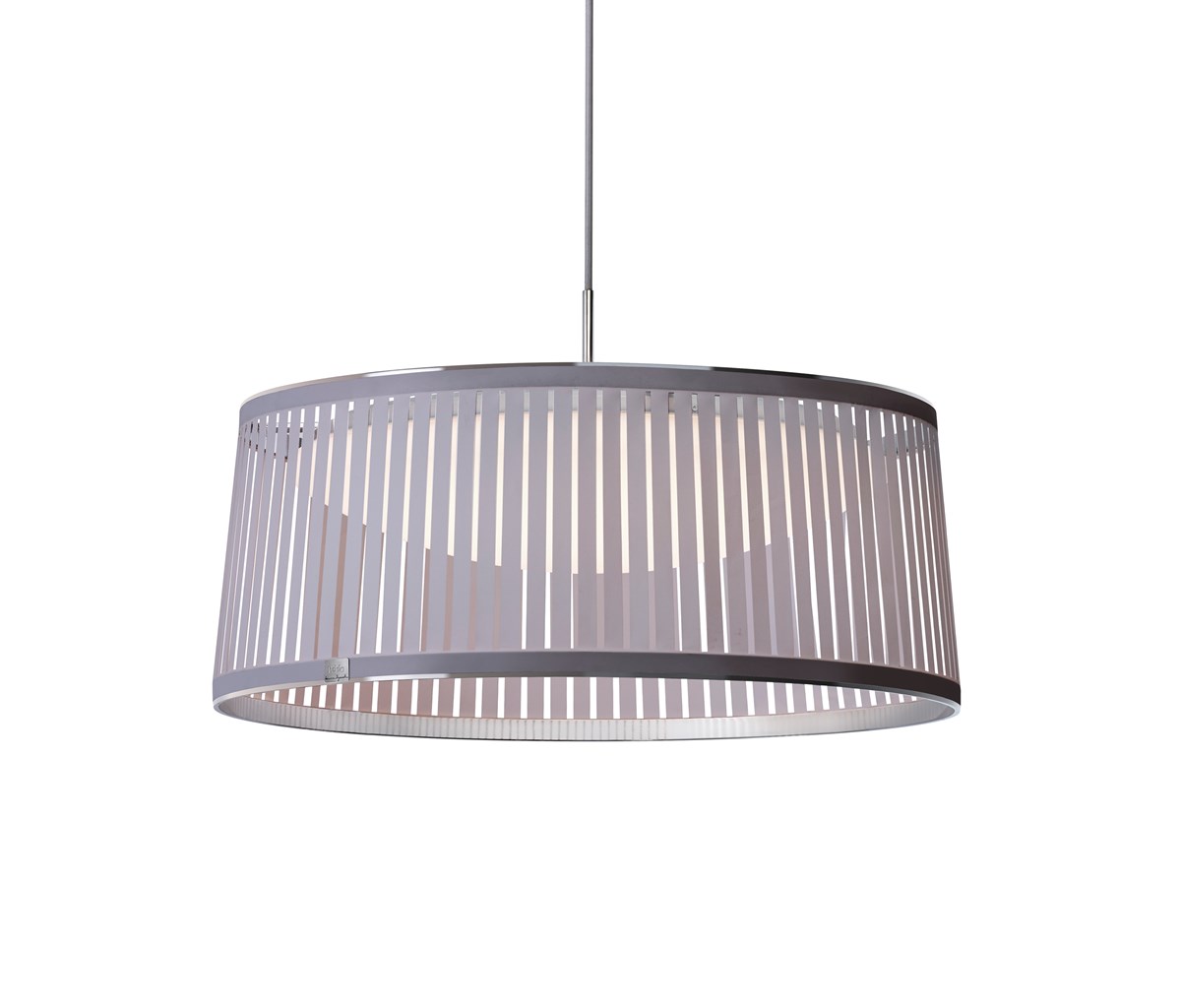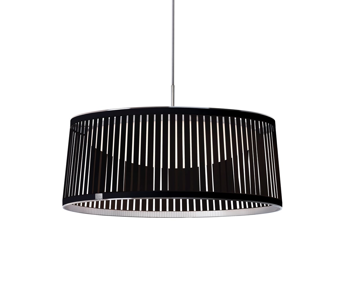 The new Solis Drum Pendant is the latest addition to the elegant Solis suspension family. Featuring a uniquely engaging blend of light and shadow, Solis Drum is made of laser cut polyester fabric combined with an aluminum top and bottom ring construction that allows the shade to hang under tension. Solis Drum also employs a stunning LED dome diffusor that spans the diameter of the top ring, radiating light down and sideways to cast shimmering warm patterns onto the space that surrounds it. The effect is a sense of weightlessness that invites a new kind of relationship with the light source. Perfect over a dining table, an entryway or in large groupings.