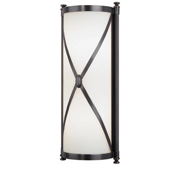 Chase Z1986 Half Round Sconce. 2-40W Max. Bulb Type: A. Direct Wire Only. Deep Patina Bronze over Steel. Frosted White Cased Glass Shade. *Can Be Mounted Horizontally or Vertically* ADA compliant.