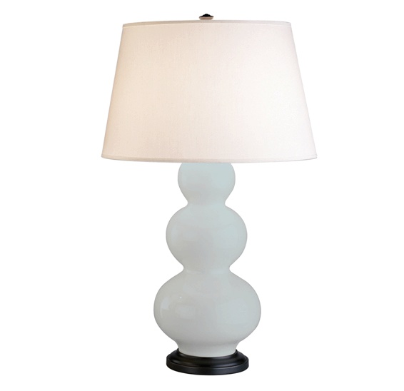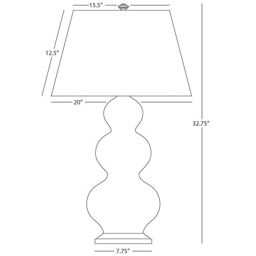 Triple Gourd 341X Table Lamp. 1 - 150W Max. Bulb Type: A. Switch: 3 - Way. Baby Blue Glazed Ceramic. Deep Patina Bronze Finished Accents. Pearl Dupioni Fabric Shade. Cord Length / Color: 8 Ft. Silver.